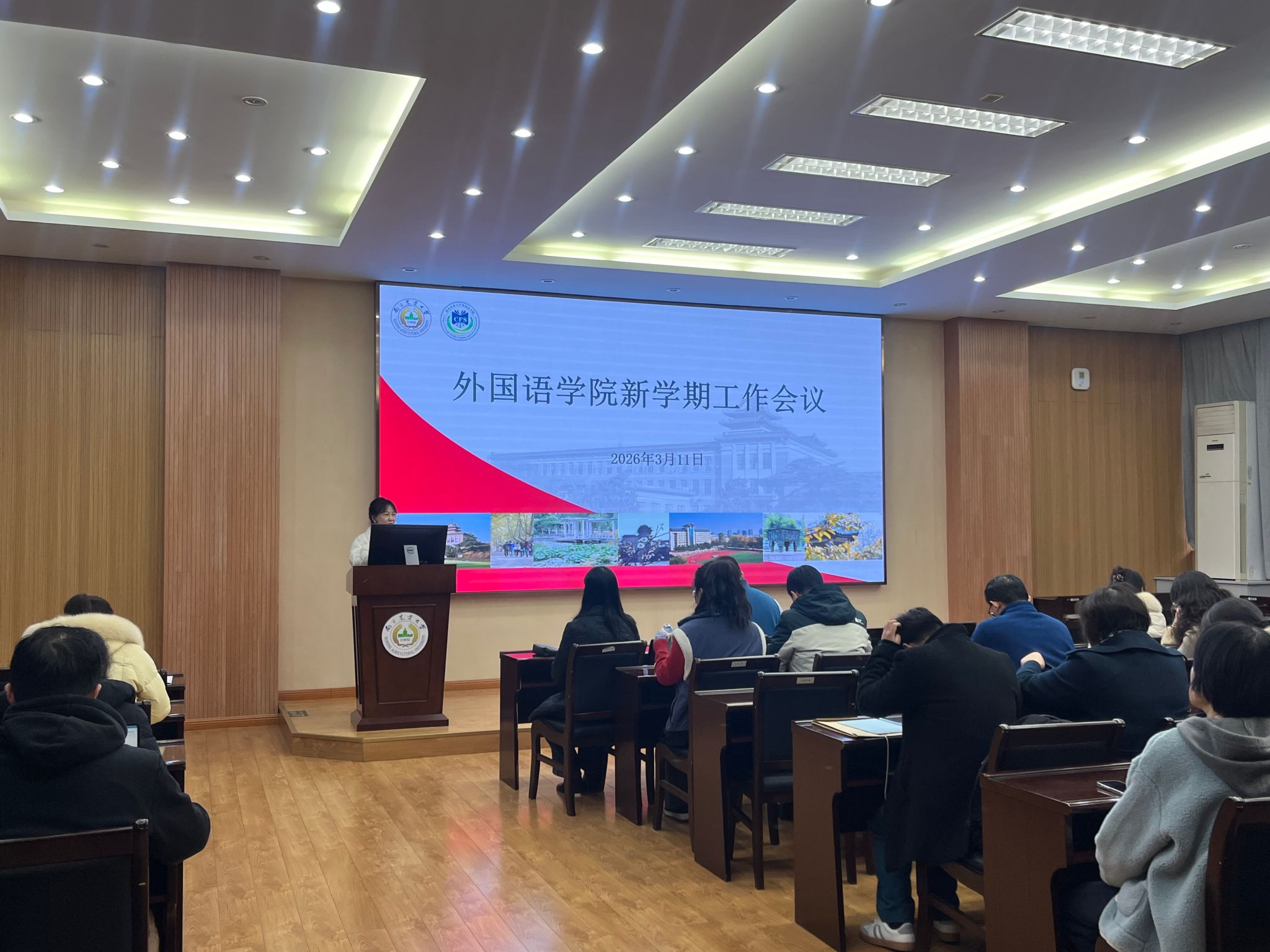 3月11日下午,外国语学院在教学楼七楼报告厅召开新学期工作会议,全院教职工参会,会议由学院党委书记董红梅主持。